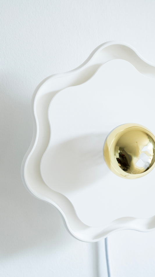 PERLA est une lampe minimaliste où l’ampoule, telle une perle, s’impose avec élégance. Inspirée des tuiles typique de Méditerranée, elle est imprimée en 3D en PLA (amidon de maïs) et ornée d’un liseré en laiton sablé.