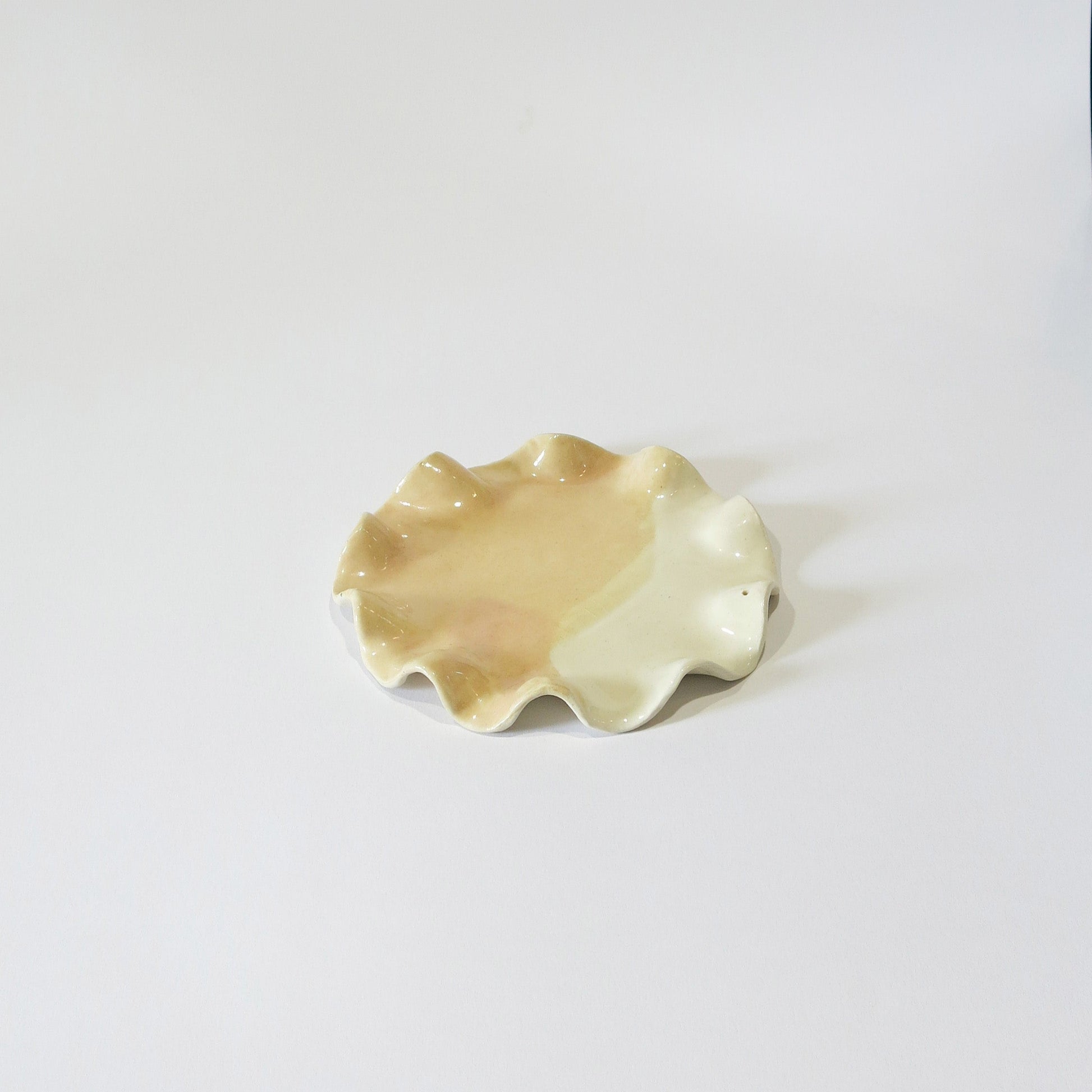 Avec ses ondulations douces et organiques, cette pièce artisanale est entièrement façonnée à la main par un céramiste, les variations de forme et d'émail rendent chaque exemplaire unique.
